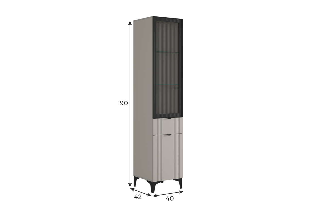 Рич Шкаф однодверный (со стеклом) кашемир/фрапучино матовый/черный из каталога Модульные гостиные купить в Москве в магазине мебели онлайн Мебельсон по цене 22 690 ₽