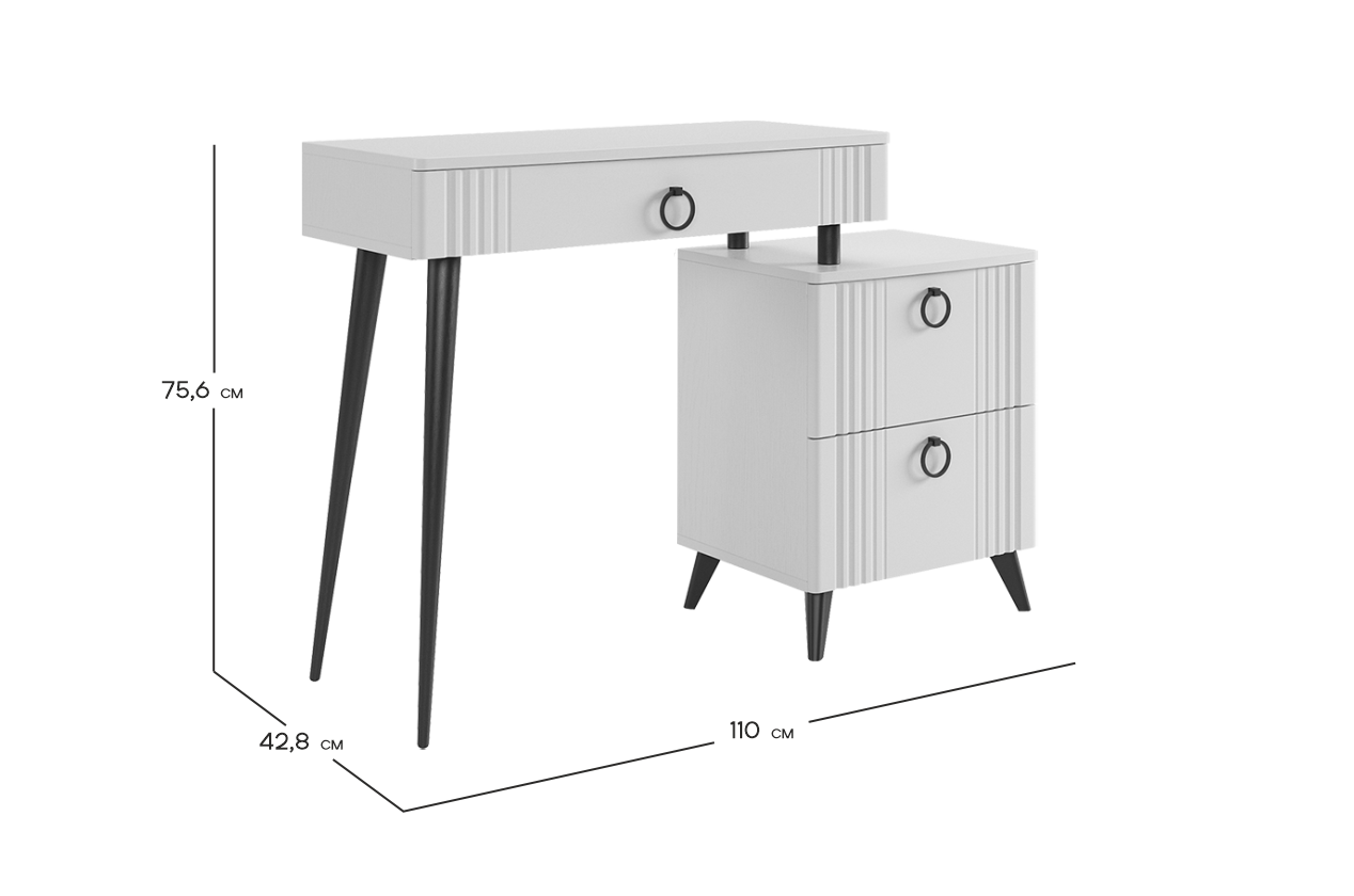 Ева Туалетный столик (без зеркала) белое дерево/белый матовый из каталога Трюмо купить в Москве в магазине мебели онлайн Мебельсон по цене 11 890 ₽