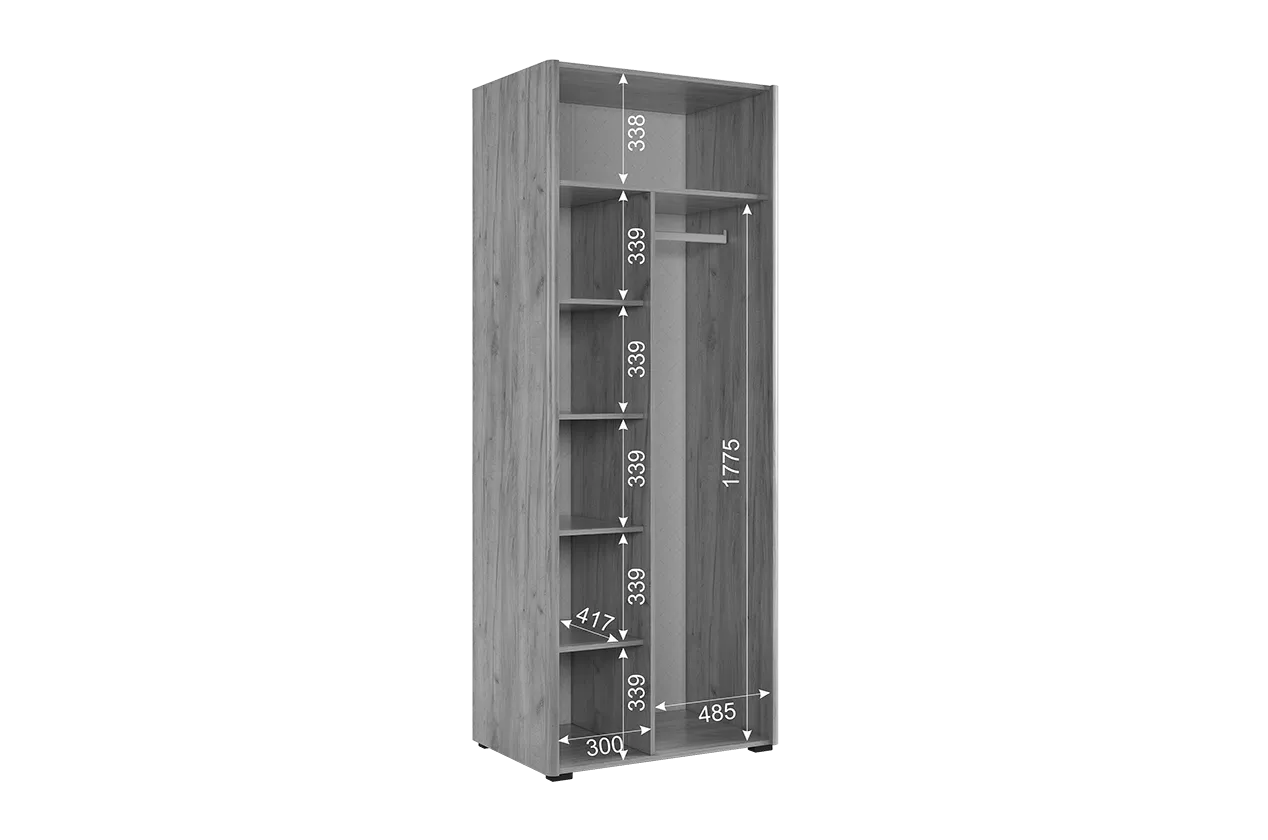 Компактный, но вместительный шкаф имеет полки и штангу для одежды, а полукруглые, обтекаемые углы обеспечат безопасность и комфорт.