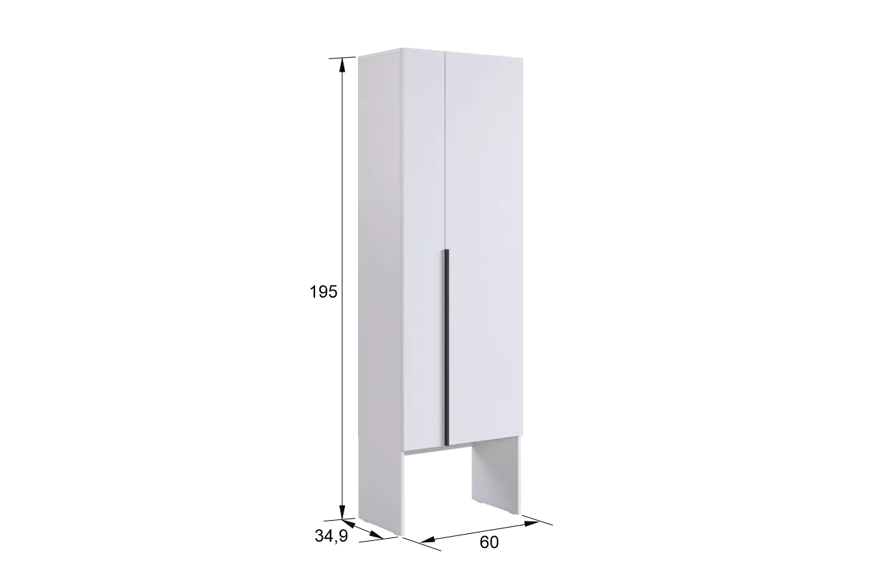 Изготовленный из высококачественного ЛДСП толщиной 16 мм, шкаф гарантирует прочность и долговечность. Длинные пластиковые ручки добавляют современный акцент и удобство в использовании.