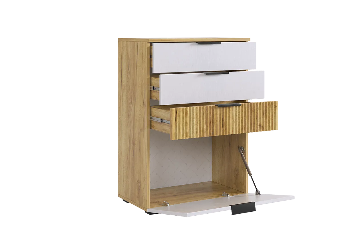 Комод "Бери"- это 3 вместительных ящика и откидная секция снизу, актуальное решение для гостиной, спальни, прихожей, детской и даже кабинета.