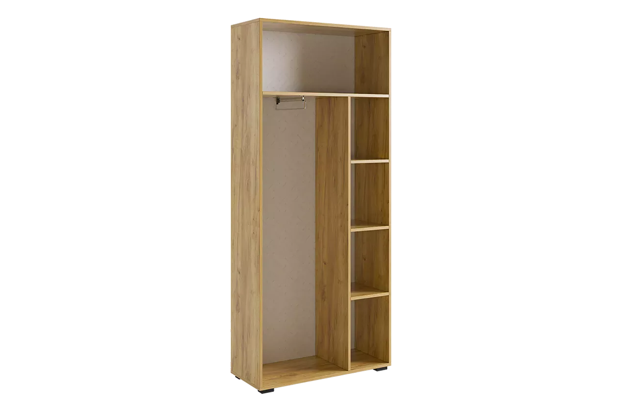 Шкаф Бери предлагает отличное решение для аккуратного хранения вашего гардероба. Он идеально дополнит современный интерьер благодаря своему дизайну и функциональности. Внутри шкафа имеется вместительное отделение с выдвижной штангой для одежды на вешалках, несколько полок для сложенных вещей и антресольная ниша для сезонных вещей. Вставки на фасадах, выполненные с вертикальной фрезеровкой, делают эту модель по-настоящему уникальной.
