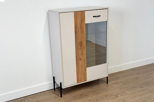 Доминика Комод (со стеклом) кашемир/дуб крафт золотой из каталога Комоды купить в Москве в магазине мебели онлайн Мебельсон по цене 14 090 ₽