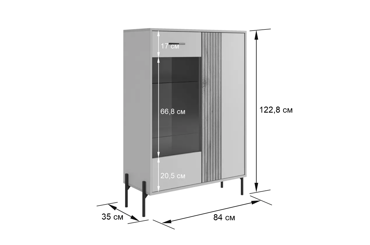 Комод "Доминика" (со стеклом) – это воплощение элегантности и функциональности. Широкий и высокий, он предлагает обширное пространство для хранения, при этом украшая ваш интерьер своим стильным дизайном.