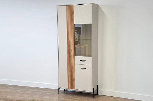Доминика Шкаф двухдверный (со стеклом) кашемир/дуб крафт золотой из каталога Витрины купить в Москве в магазине мебели онлайн Мебельсон по цене 20 790 ₽