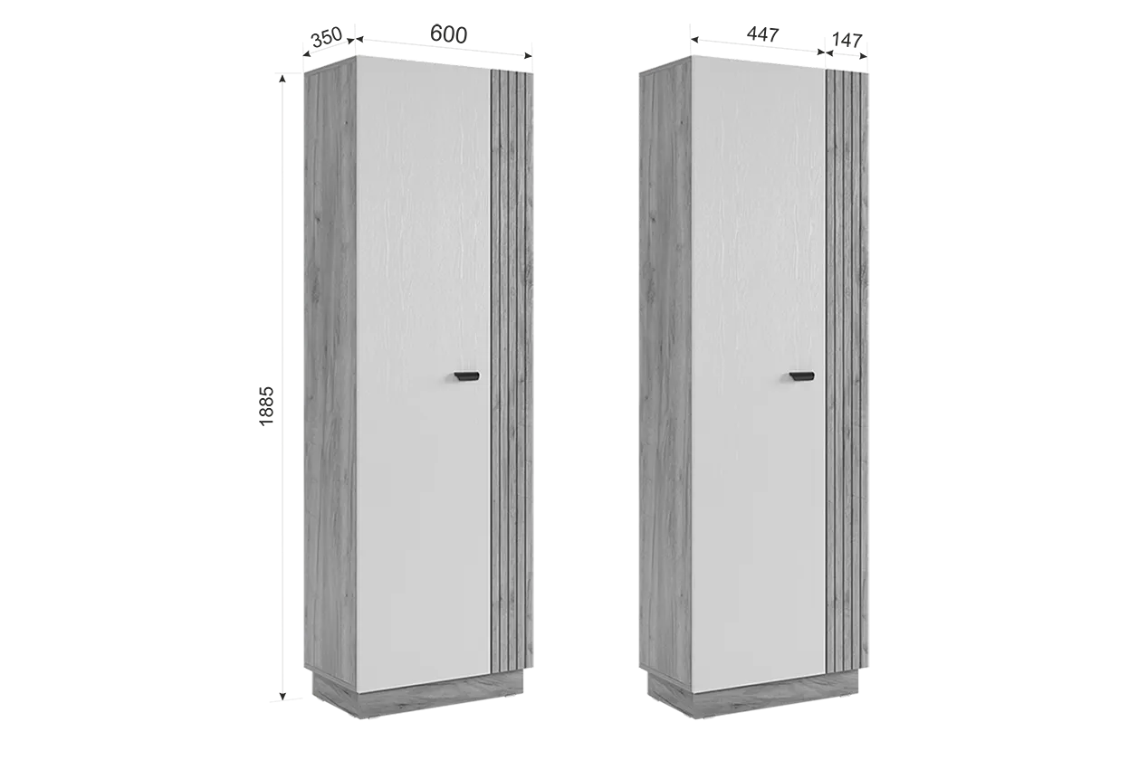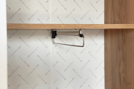 Состоит из: шкафа с 2-мя дверцами, 2-мя стационарными полками, 2-мя съемными полками и одной выдвижной штангой для одежды.