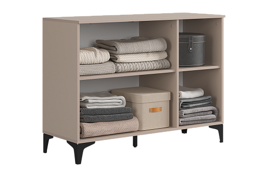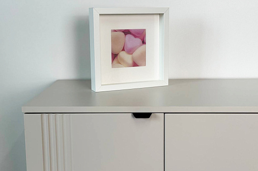 Дверцы комода выполнены из МДФ с фрезеровкой и скрывают за собой просторное хранилище для различных вещей.