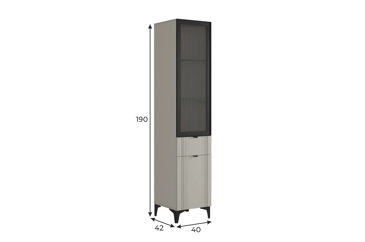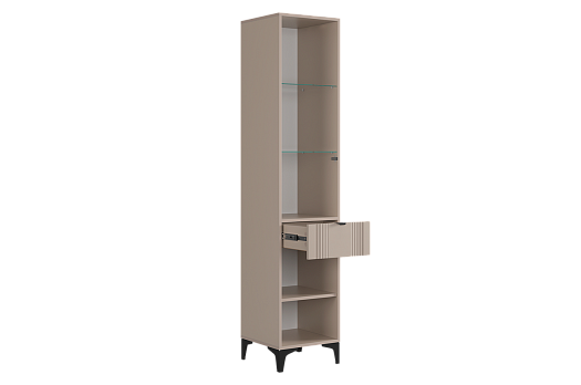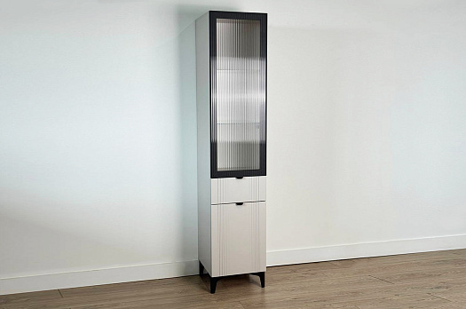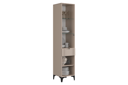 Рич Шкаф однодверный (со стеклом) кашемир/фрапучино матовый/черный из каталога Модульные гостиные купить в Москве в магазине мебели онлайн Мебельсон по цене 22 690 ₽