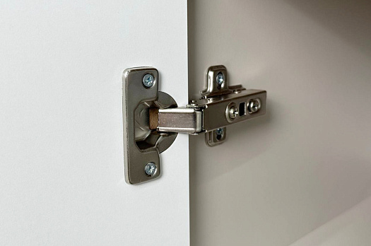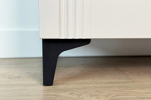 Корпус шкафа изготовлен из ЛДСП, что гарантирует прочность и долговечность. Фасад, покрытый МДФ в плёнке ПВХ, не только выглядит эстетично, но и защищает шкаф от повреждений. Особое внимание заслуживает фрезеровка фасадов, которая придаёт шкафу изысканный вид.