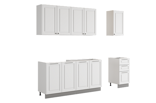 Заказывала этот гарнитур для небольшой кухни, ширина 2 метра подошла идеально. Очень довольна покупкой! Белый цвет с эмалью смотрится свежо и визуально расширяет пространство. Качество сборки хорошее, все детали подошли точно, фурнитура работает плавно. Особенно понравились ручки в античном серебре - добавляют изящности. Шкафы вместительные, три выдвижных ящика в нижнем модуле очень удобны для хранения. Доставка была аккуратной, упаковано надежно. За такую цену отличное соотношение качества и внешнего вида. Рекомендую!