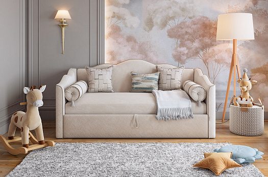 Кровать с подъемным механизмом Лея (Софа) 90х200 см крем (велюр)/латте (велюр) из каталога Детские кровати купить в Москве в магазине мебели онлайн Мебельсон по цене 51 390 ₽