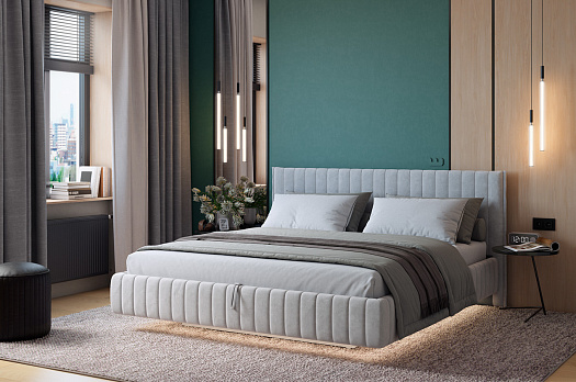 Дизайн данной двуспальной кровати позволяет легко ее адаптировать в интерьер спальни, при этом создавая уют комнаты.