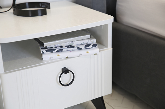 Ева Тумба прикроватная белое дерево/белый матовый из каталога Прикроватные тумбы купить в Москве в магазине мебели онлайн Мебельсон по цене 4 690 ₽